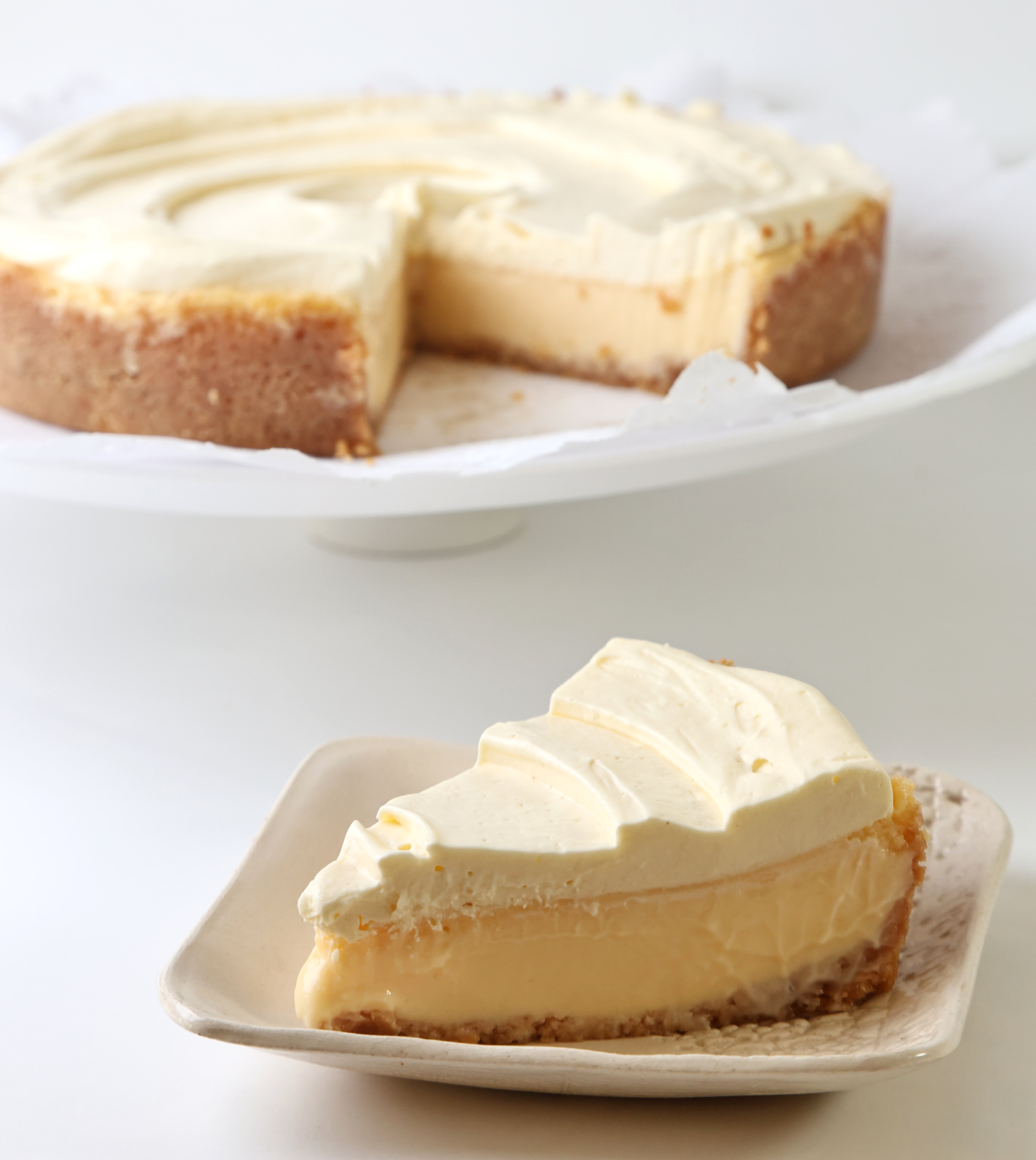 Base de galletas dulces, crema de limón con leche condensada, y chantilly.