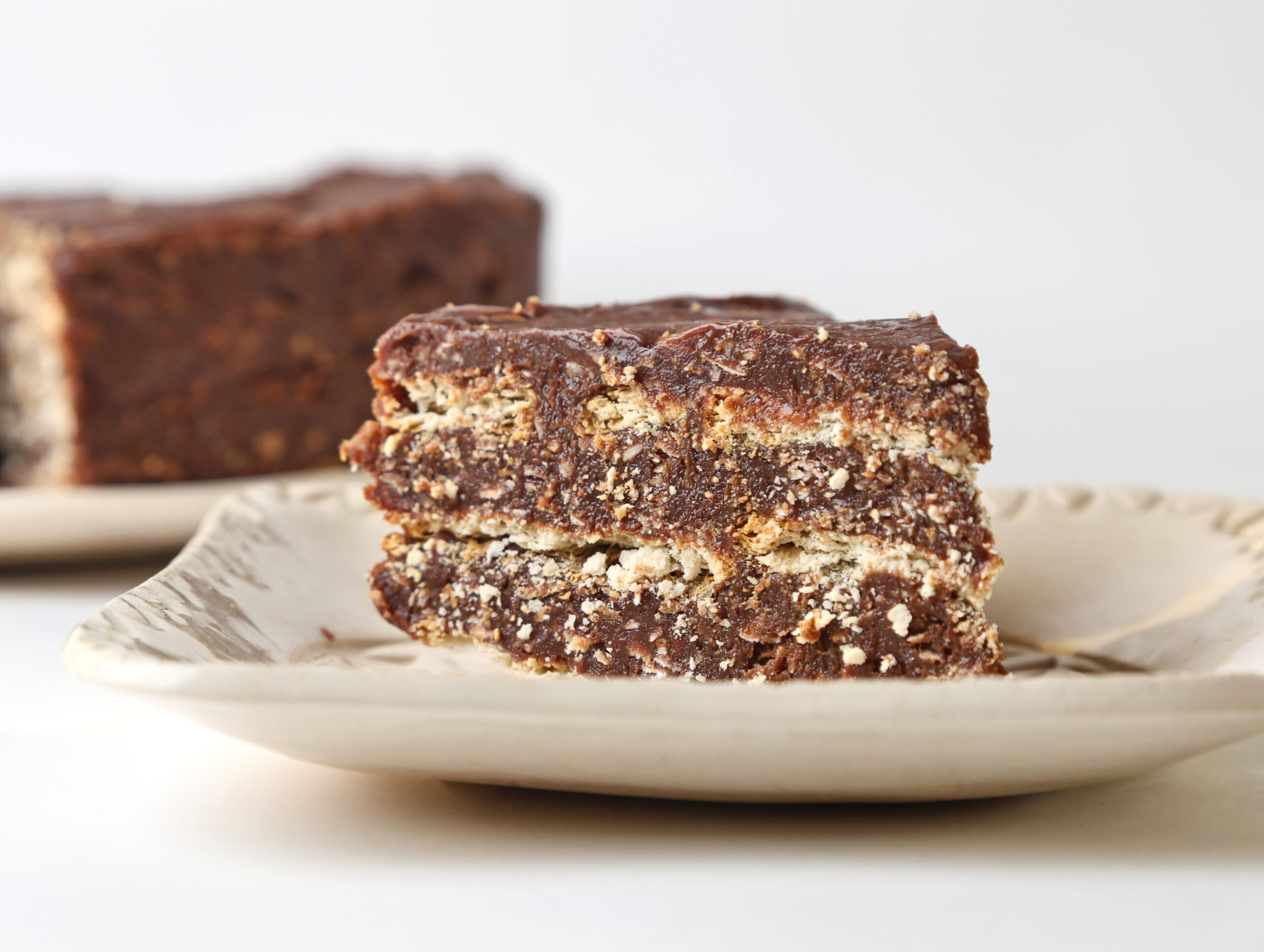 Galletitas criollitas con crema de dulce de leche, chocolate semiamargo y avena.